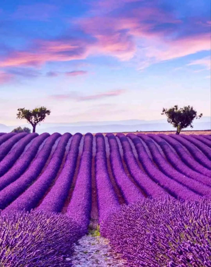 普罗旺斯法国东南部的薰衣草故乡,吕贝隆山区的薰衣草花海在夏季盛开,绵延的紫色花海与阳光、微风交织,构成如诗如画的田园风光,被誉为“花之地”。