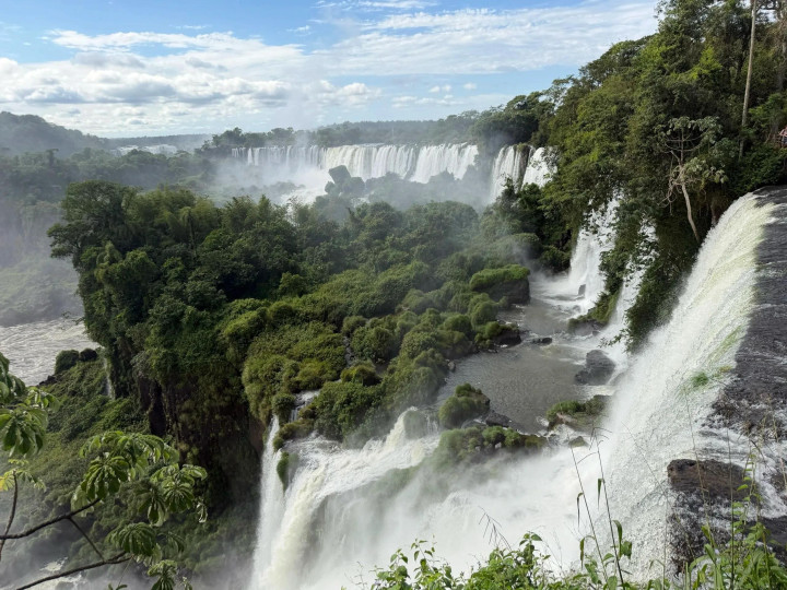 伊瓜苏瀑布位于阿根廷与巴西交界处,是世界上最宽的瀑布,由275个小瀑布组成,水流垂直跌落形成数十米高的瀑布群,气势磅礴,如云漫雾绕,1984年被列入世界自然遗产名录。